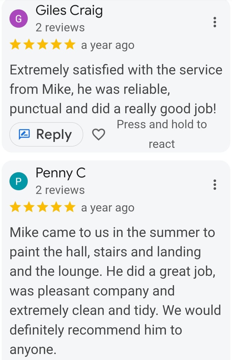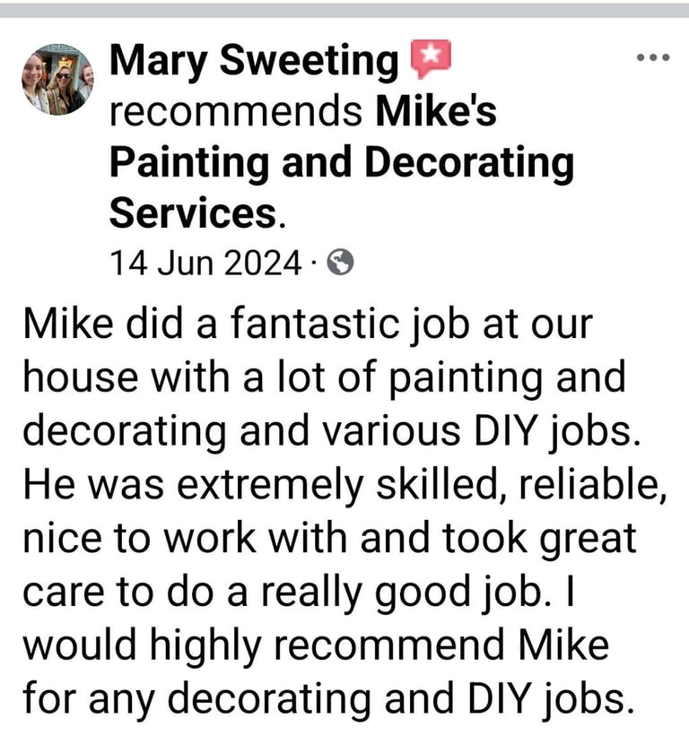 Mike's Painting and Decorating Services did an exceptional job painting and decorating our home. They were top-notch. Highly recommend them!